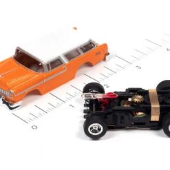 This is the Auto World 1955 Chevrolet Nomad (Orange) Xtraction Flamethrowers R33 HO Slot Car.