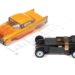 This is the Auto World 1957 Chevrolet Bel Air (Orange) Cars N Coffee Thunderjet HO Slot Car.