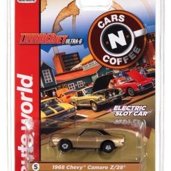 This is the Auto World 1968 Chevrolet Camaro Z/28 (Gold) Cars N Coffee Thunderjet HO Slot Car.