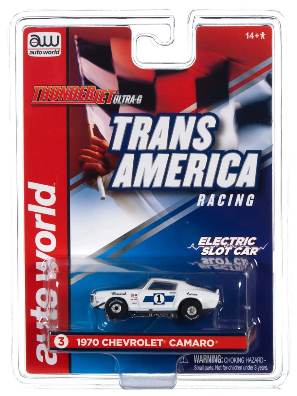 This is the Auto World 1970 Chevy Camaro Jim Hall #1 Thunderjet HO Slot Car.
