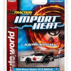 This is the IMPORT HEAT Auto World 1999 Nissan Skyline GTR (White/Black) Import Heat X-Traction HO Slot Car