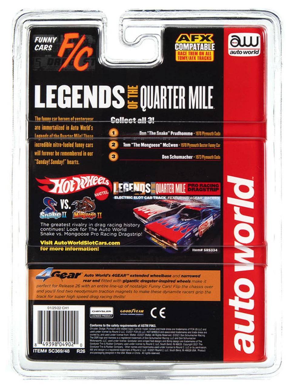 This is the Auto World Don “The Snake” Prudhomme 1970 Cuda Funny Car 4Gear R26 HO Slot Car