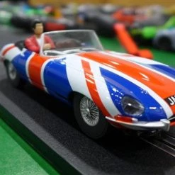This is the Scalextric Jaguar E-Type Union Jack 1/32 Analog Slot Car.