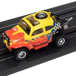 Auto World 1965 Volkswagen Baja Bug (Red, Yellow) Rally World Stage X-Traction HO Slot Car
